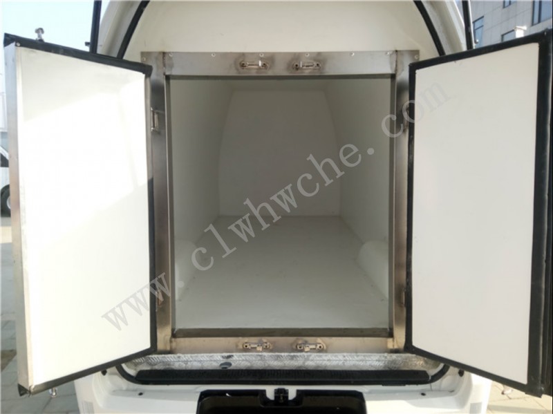 廂體內(nèi)景6:醫(yī)療廢物轉(zhuǎn)運車專用全不銹鋼廂體材料,尾部設(shè)計兩道門,門中門。